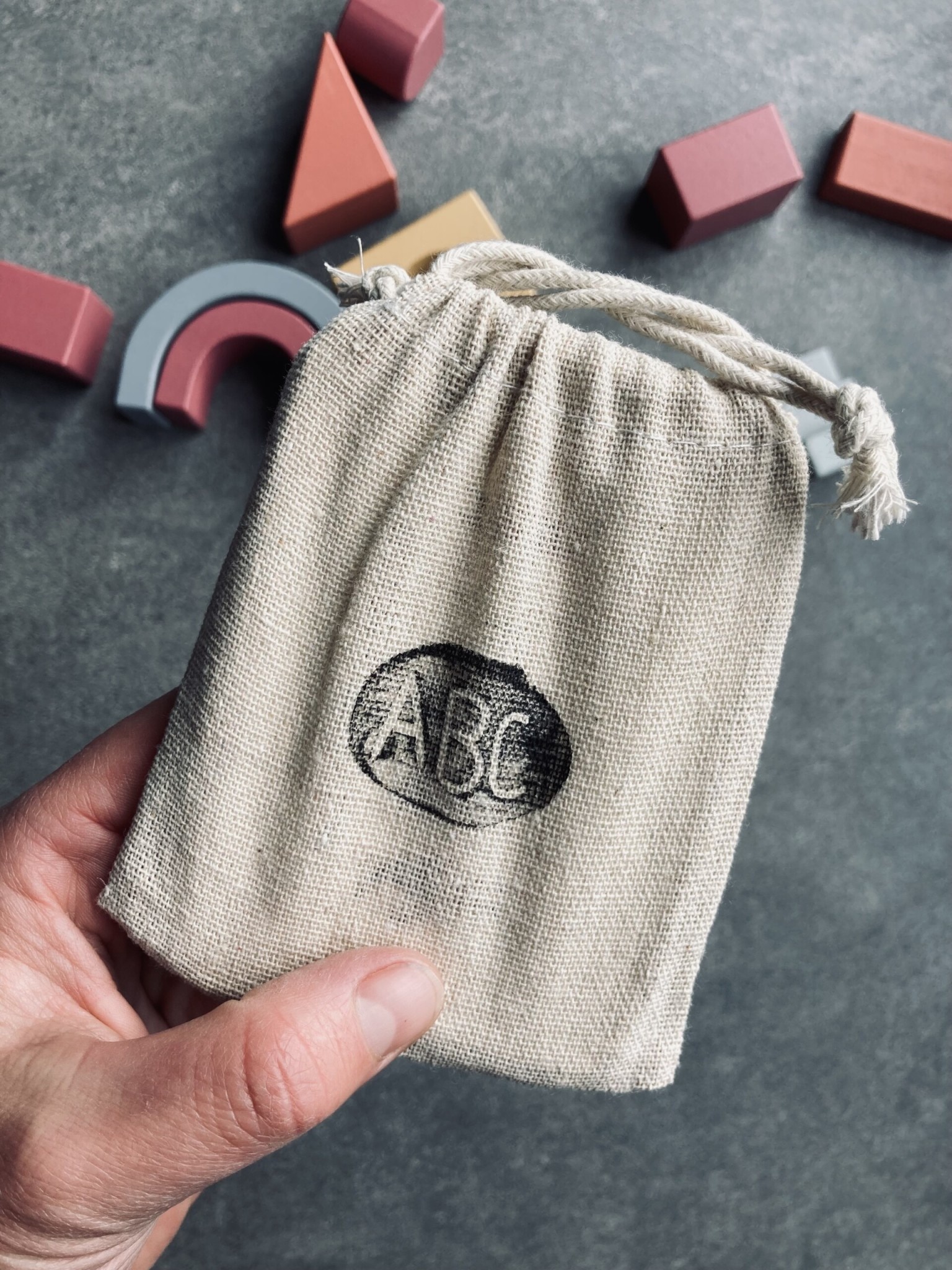 De alfabetkaarten worden zorgvuldig verpakt in een katoenen zakje (10,03 x 12,02 cm).